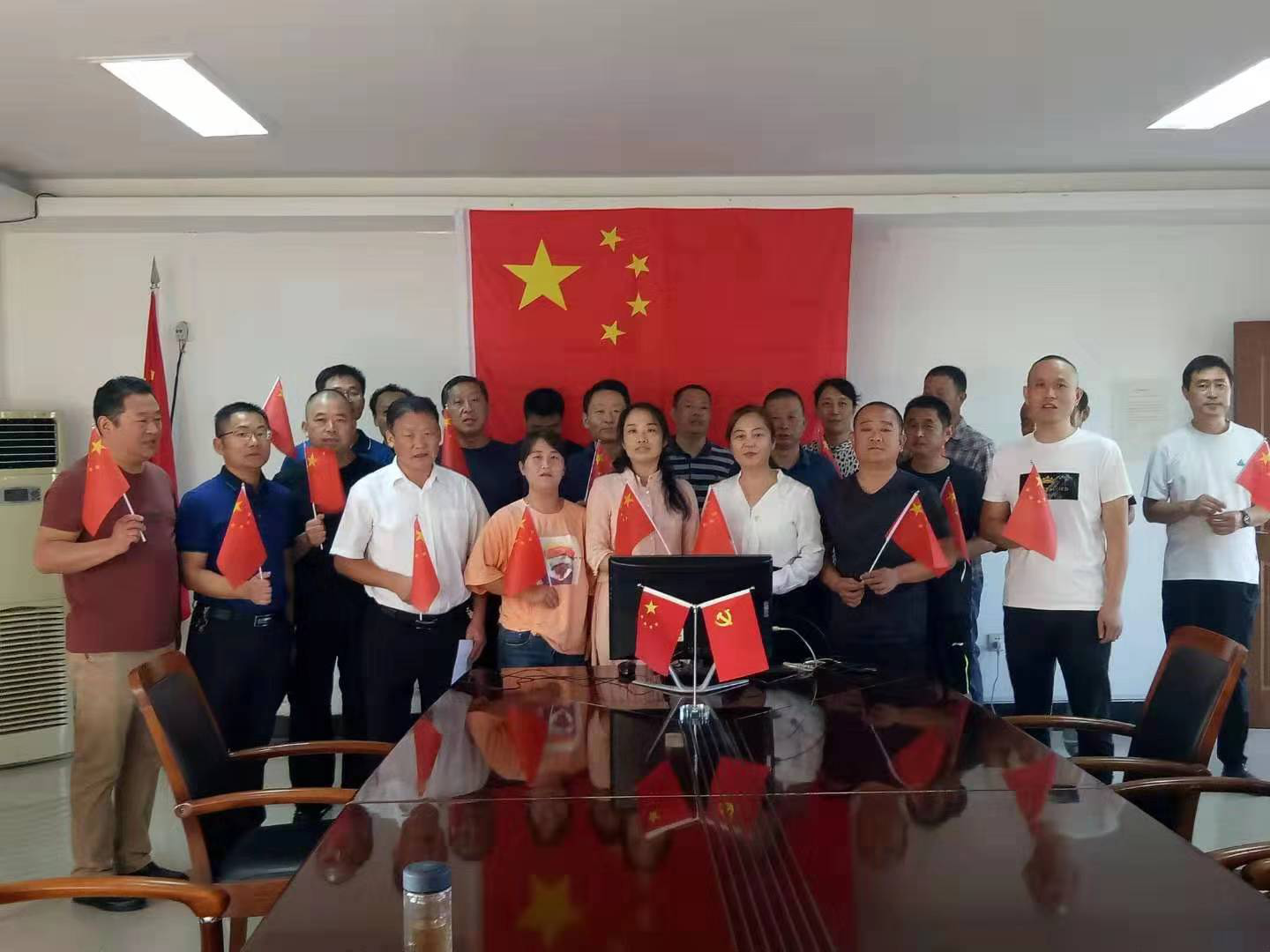當(dāng)《義勇軍進(jìn)行曲》音樂響起,阜陽市鹽業(yè)人揮舞著五星紅旗齊聲高唱“起來,不愿做奴隸的人們……”,雄壯嘹亮的國歌聲,在黨員活動(dòng)室內(nèi)久久回蕩。隨后,大家又齊聲高歌《歌唱祖國》,“五星紅旗迎風(fēng)飄揚(yáng),勝利歌聲多么響亮”,唱出對(duì)中華人民共和國成立70周年最美好的祝福和熱愛。