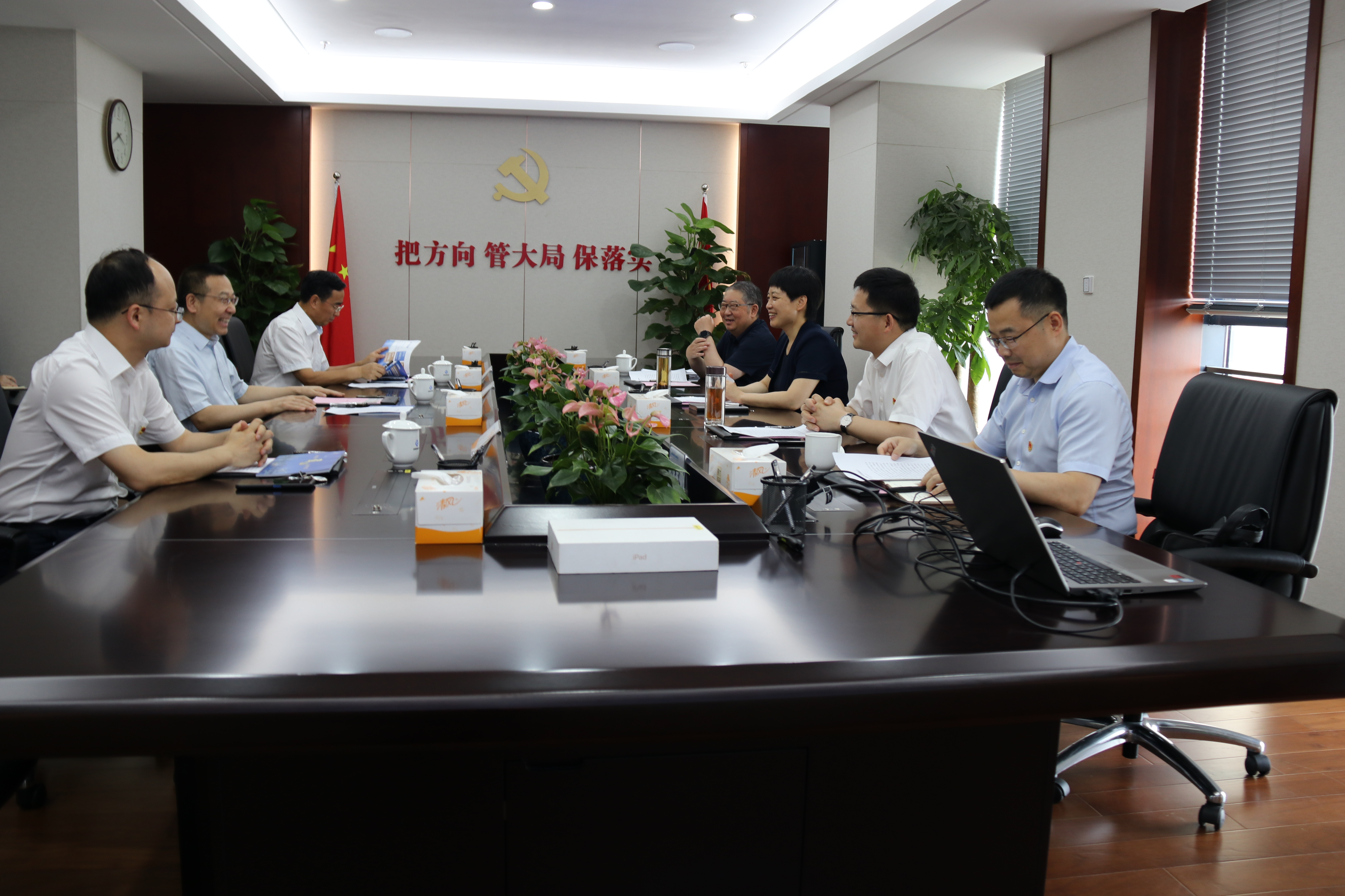 馬占文董事長對王海霞書記一行來訪表示歡迎,并介紹了集團(tuán)公司的改革發(fā)展情況,特別是環(huán)保產(chǎn)業(yè)發(fā)展現(xiàn)狀及戰(zhàn)略規(guī)劃。王海霞書記介紹了蜀山區(qū)區(qū)域規(guī)劃、產(chǎn)業(yè)布局以及對戰(zhàn)略新興產(chǎn)業(yè)的有關(guān)政策等情況。