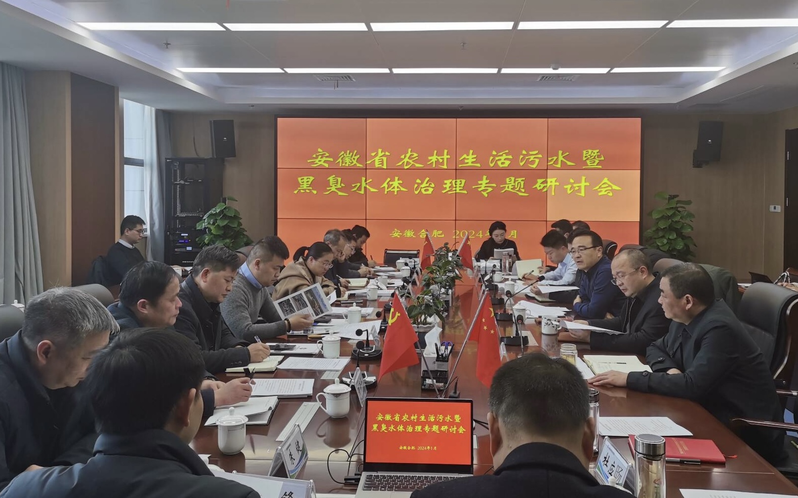 為進(jìn)一步提煉農(nóng)村黑臭水體治理的行業(yè)經(jīng)驗(yàn),推動我省農(nóng)村黑臭水體治理工作的試點(diǎn)先行,省生態(tài)環(huán)境集團(tuán)邀請省內(nèi)外從事農(nóng)村黑臭水體治理的近二十家頭部企業(yè),于1月4日在環(huán)境科技公司召開安徽省農(nóng)村生活污水暨黑臭水體治理專題研討會。省生態(tài)環(huán)境集團(tuán)黨委委員、副總經(jīng)理王奇主持會議。