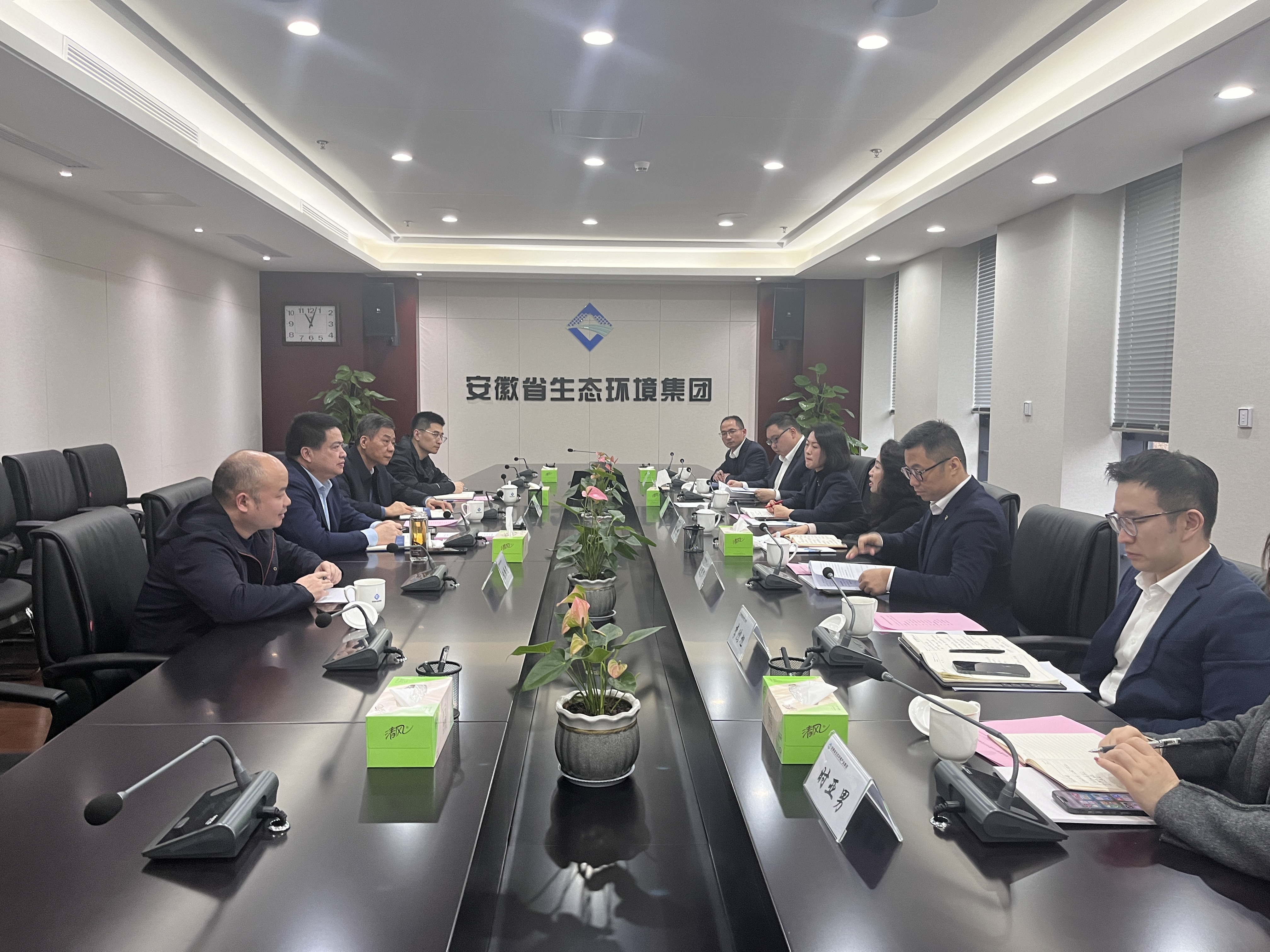 羅太忠介紹了省生態(tài)環(huán)境集團(tuán)的發(fā)展歷程、當(dāng)前業(yè)務(wù)開(kāi)展情況以及下一步發(fā)展戰(zhàn)略。他指出,當(dāng)前省生態(tài)環(huán)境集團(tuán)正積極發(fā)揮全省生態(tài)環(huán)境領(lǐng)域重大基礎(chǔ)設(shè)施投資建設(shè)運(yùn)營(yíng)、統(tǒng)籌治理、產(chǎn)業(yè)聯(lián)動(dòng)發(fā)展和科技創(chuàng)新及數(shù)字經(jīng)濟(jì)發(fā)展平臺(tái)作用,認(rèn)真落實(shí)省委、省政府重大決策部署,積極承接省直有關(guān)廳局任務(wù)要求,以地方生態(tài)環(huán)境領(lǐng)域問(wèn)題解決和發(fā)展需求為導(dǎo)向,統(tǒng)籌謀劃和推進(jìn)生態(tài)環(huán)境治理、城市更新、健康養(yǎng)老等方面項(xiàng)目,發(fā)展前景廣闊。他表示,華夏銀行合肥分行在債券承銷、金融產(chǎn)品創(chuàng)新等方面優(yōu)勢(shì)突出,希望雙方進(jìn)一步加強(qiáng)合作,推動(dòng)更多合作事項(xiàng)落地,實(shí)現(xiàn)共贏發(fā)展。