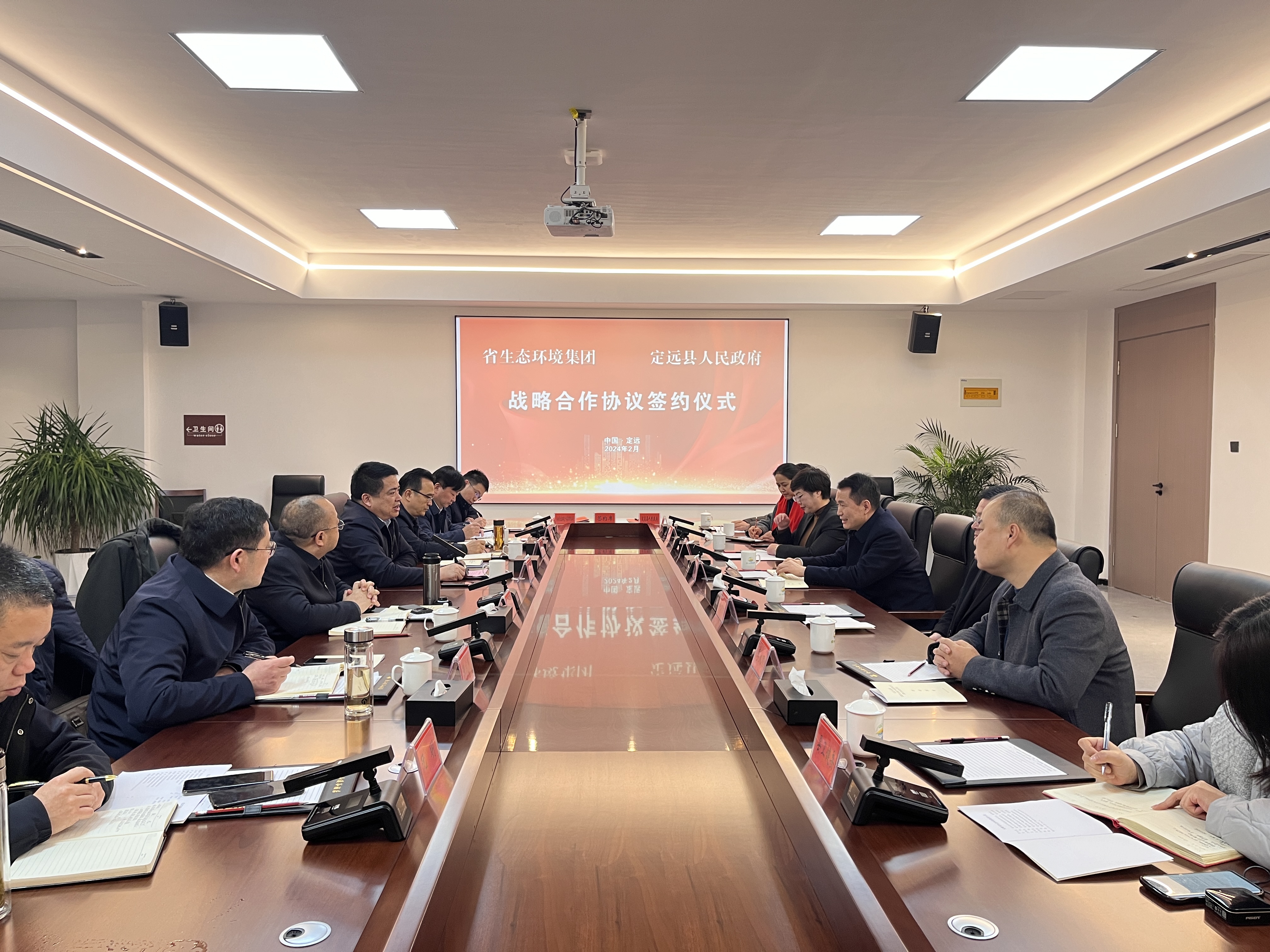 2月6日,省生態(tài)環(huán)境集團與定遠縣人民政府簽訂戰(zhàn)略合作協(xié)議。省生態(tài)環(huán)境集團黨委書記、董事長羅太忠,定遠縣委副書記、縣長潘金鐘出席并見證簽約。