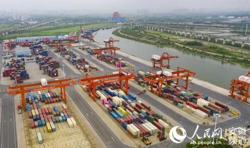 安徽省港航集團旗下的合肥港國際集裝箱碼頭。人民網(wǎng) 張俊攝