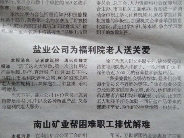 《皖江晚報》:鹽業公司為福利院老人送關愛