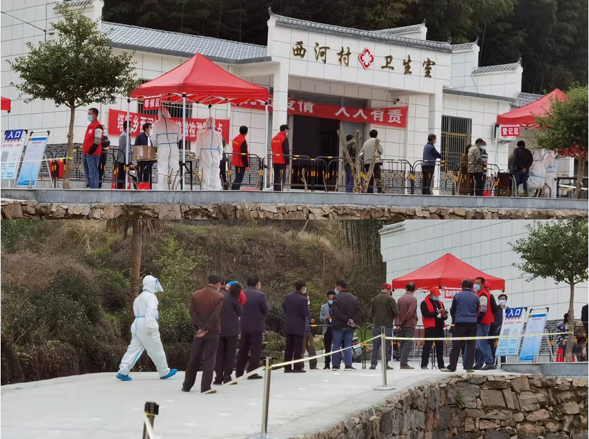 3月30日下午2點30分,隨著演練領(lǐng)導(dǎo)小組的演練命令下達,演練各小組嚴(yán)格按照演練方案要求有序開展各自崗位工作。從村組動員到核酸人員登記,從體溫檢測到核酸采樣,從交通保障到醫(yī)療救護,從標(biāo)本運送到消毒消殺,各項工作有條不紊地推進。經(jīng)過一個半小時的演練,圓滿完成了西河村聯(lián)防隊、生態(tài)護林員、茶廠生產(chǎn)人員近百人的核酸檢測任務(wù)。