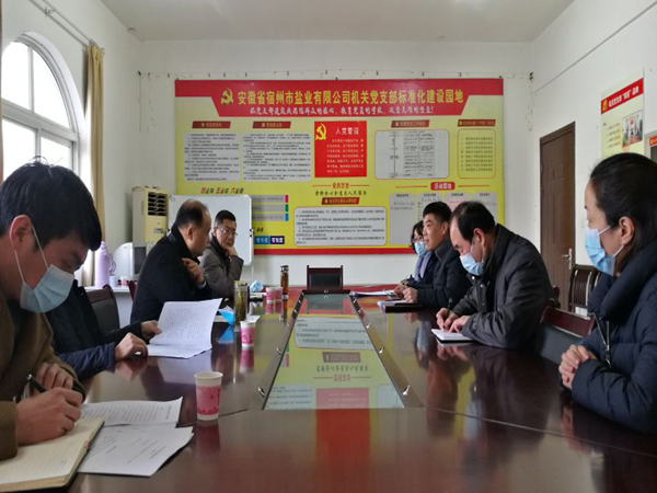 宿州市鹽業(yè)公司總支書記、經(jīng)理陳勇匯報(bào)了宿州鹽業(yè)基本情況和各項(xiàng)工作。祖鈞公對(duì)宿州市鹽業(yè)改革后取得的各項(xiàng)成績予以了高度肯定。他指出,宿州鹽業(yè)要繼續(xù)做好2021年食鹽供應(yīng)工作,做好食鹽儲(chǔ)備的同時(shí)抓好疫情防護(hù)。他還要求經(jīng)信局要協(xié)調(diào)相關(guān)部門,加大市場監(jiān)管力度,齊抓共管,共同維護(hù)好鹽業(yè)市場,讓市民吃上放心食鹽。