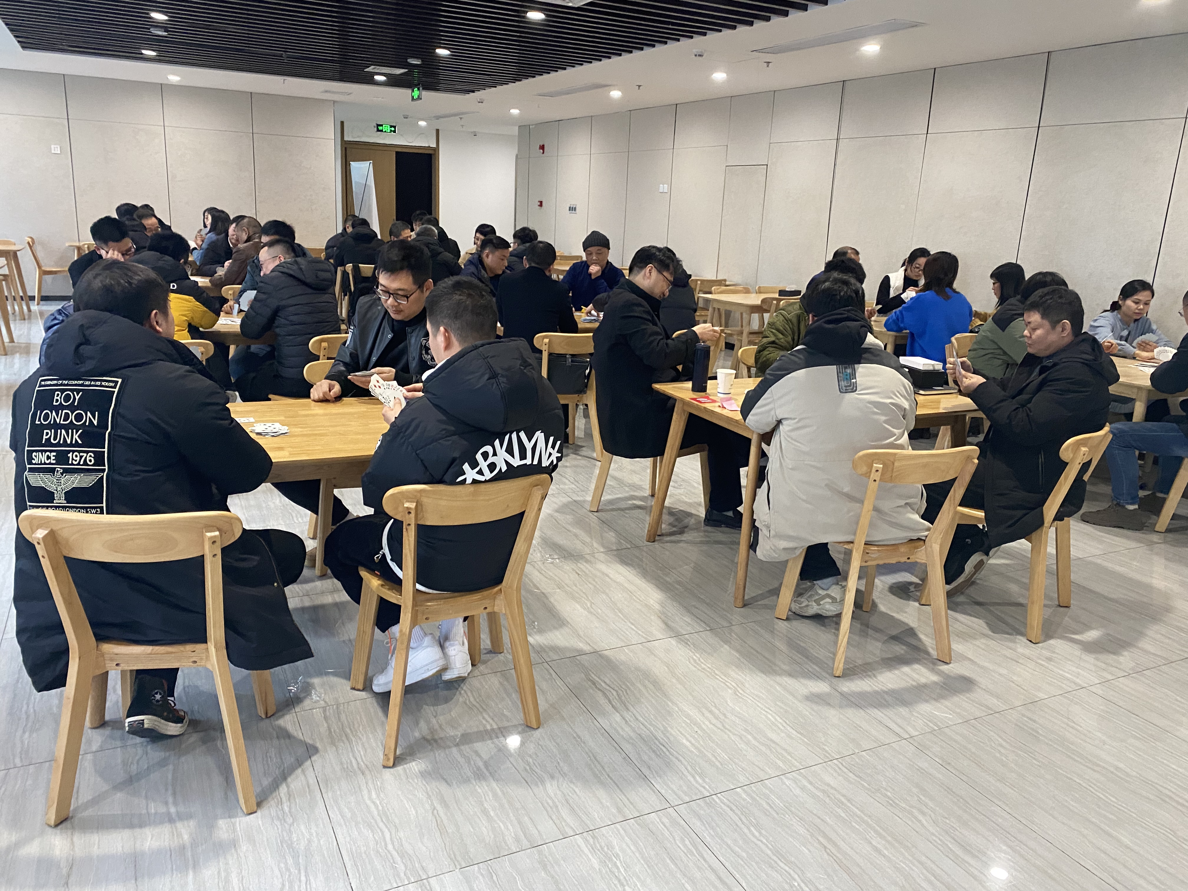 比賽共分三輪,每輪開始前進(jìn)行抽簽,抽到桌號相同的則為一組,勝者進(jìn)入下一輪比賽。參賽職工本著“友誼第一、比賽第二”的競賽精神,通過比賽增進(jìn)友誼、相互交流。比賽中,各位選手密切配合、沉著應(yīng)戰(zhàn),對陣雙方炫牌技、比智慧、賽成績、促友誼,現(xiàn)場其樂融融。經(jīng)過三輪激烈的角逐,最終決出一等獎三名、二等獎三名、三等獎五名。