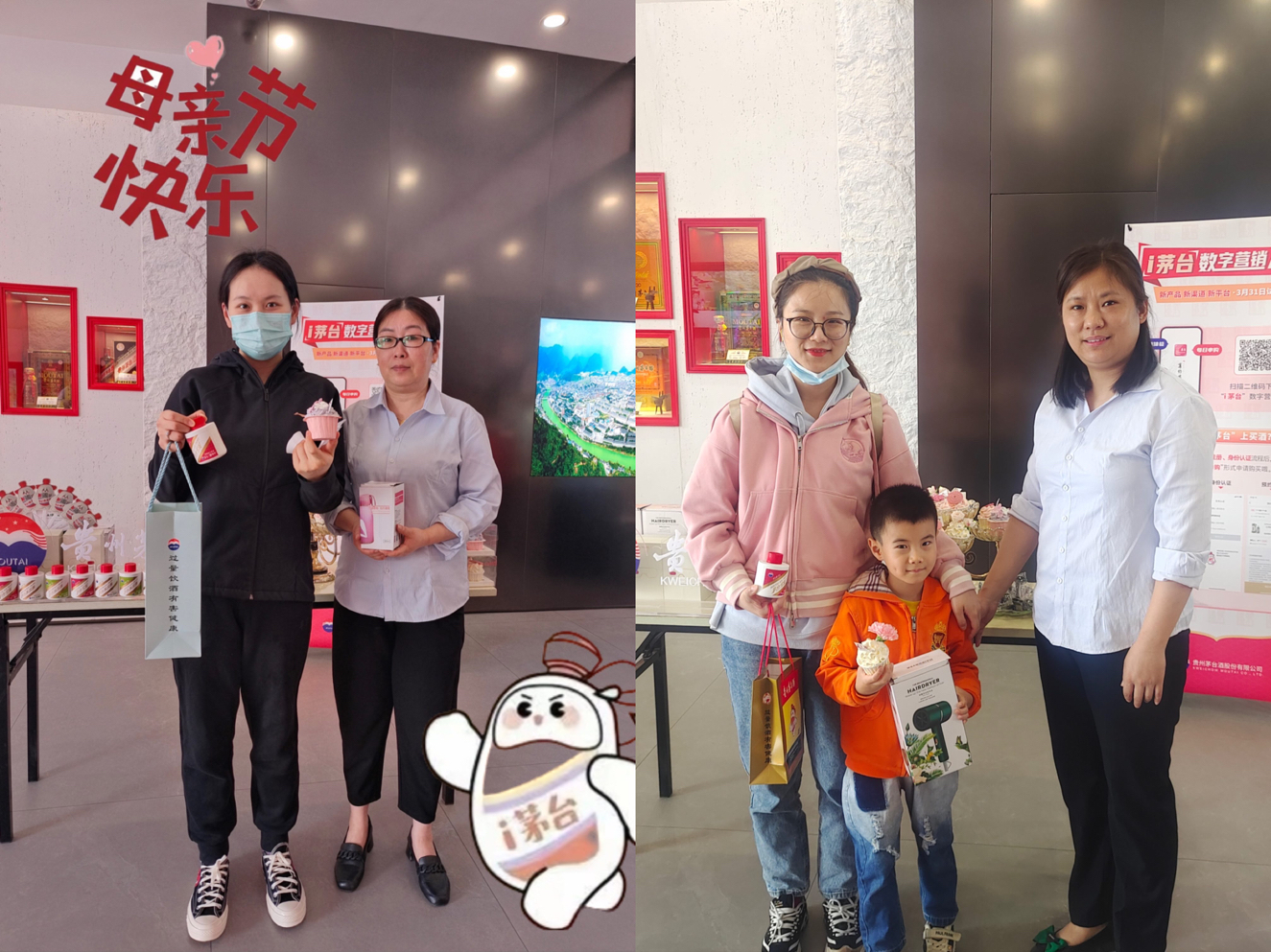 活動期間,我們為進店客戶準備了精美蛋糕、水杯等,并為進店的媽媽們贈送一份茅臺冰淇淋,希望把最美好的祝福送給每一位女性客戶,讓她們都能感受到濃厚溫馨的節日氛圍。進店參與活動的每一位母親都帶著開心的笑容,在這個屬于她們的節日里,安徽鹽業商貿有限公司全體員工真誠的祝福所有母親健康快樂、青春美麗。