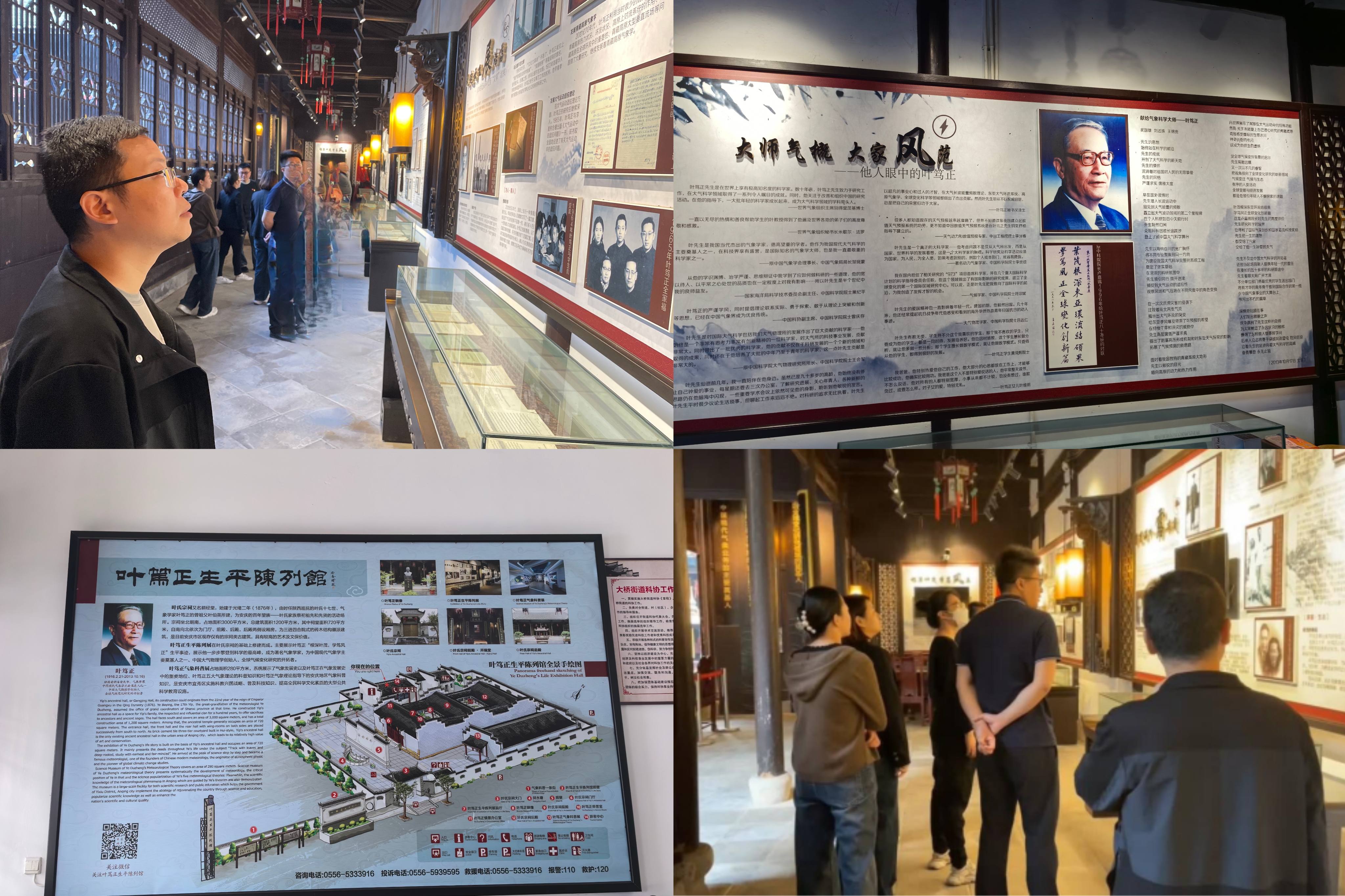葉篤正生平陳列館位于宜秀區大橋街道葉祠社區,展館以“根深葉茂、學篤風正”為設計主線,以時間為經線,以空間為緯線,通過文字、圖片、音視頻、虛擬成像等方式,展示葉篤正懷揣“科學救國”理想,投身新中國氣象事業并不懈奮斗一生的事跡,彰顯了葉篤正愛國、勤奮、求實、創新、清廉、奉獻的大家風采。